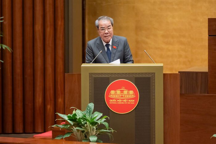 Chủ nhiệm Ủy ban Dân nguyện và Giám sát của Quốc hội Dương Thanh Bình trình bày báo cáo tiếp thu, giải trình. Ảnh Quochoi.vn.